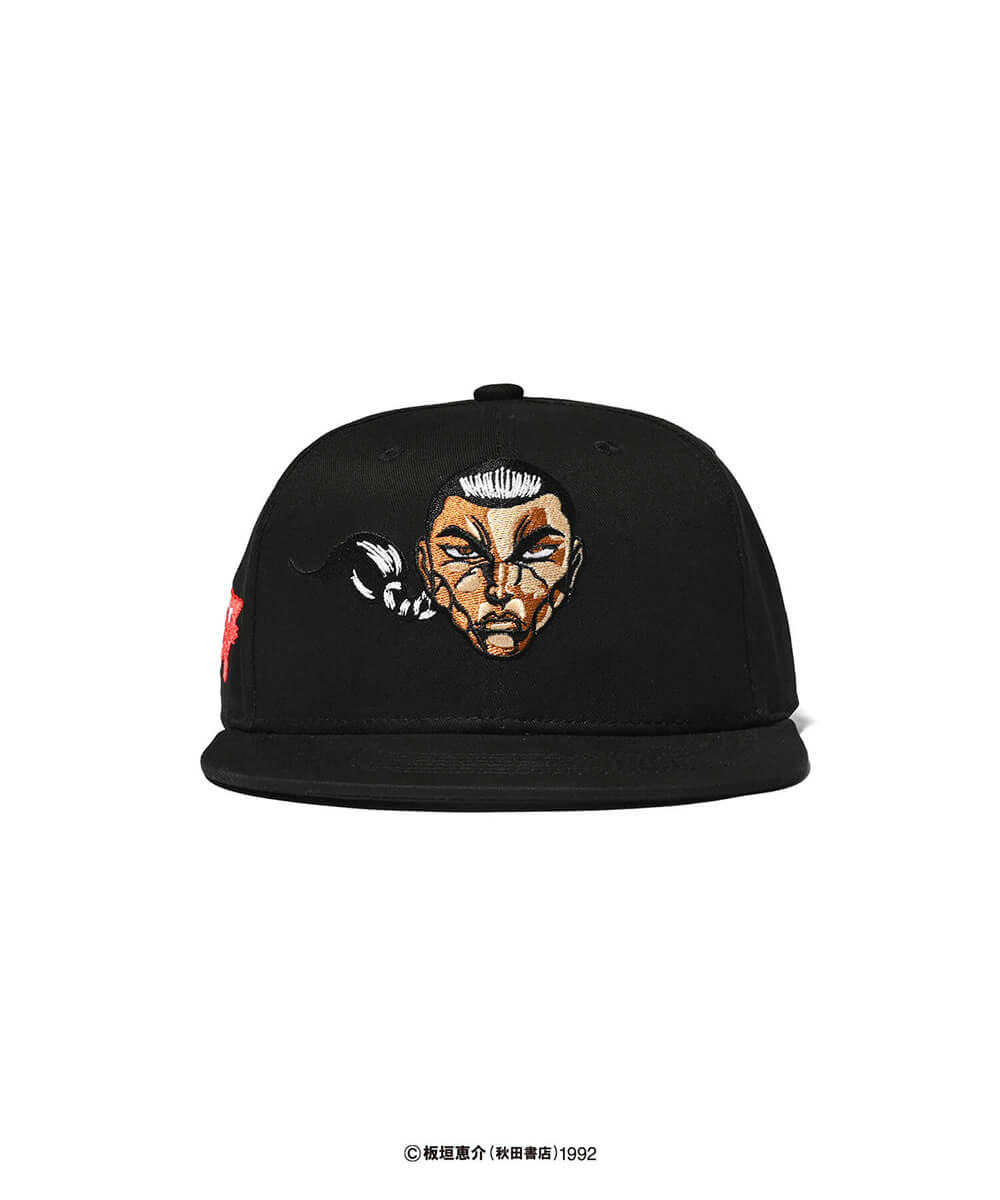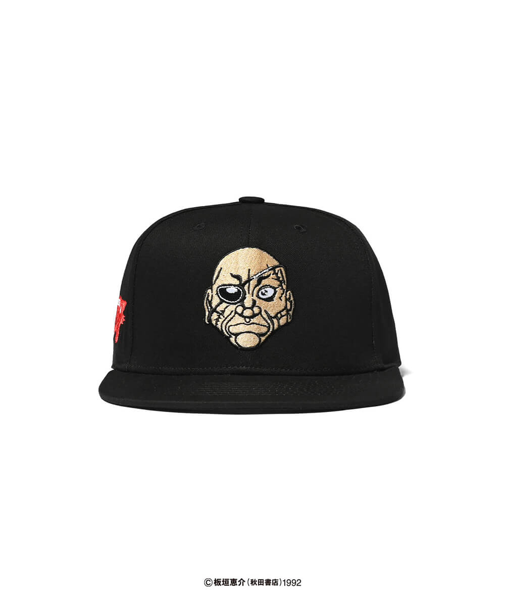 中国武術界における高位の称号“海王”を受け継ぐ中国拳法の達人「烈海王」の凛とした表情が刺繍で表現されたインパクト大のスナップバックキャップ。