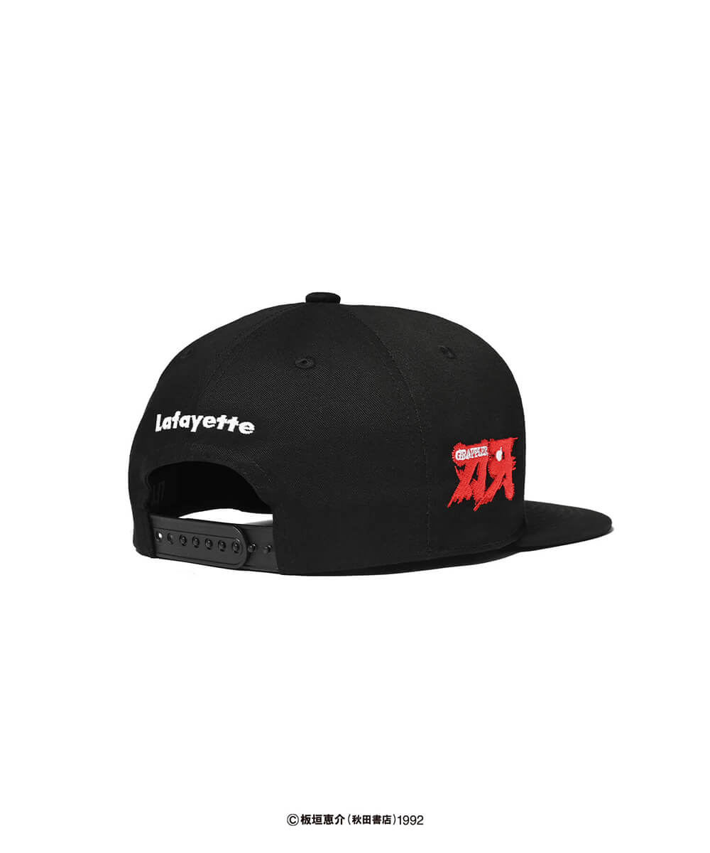 サイドにはタイトルロゴである「刃牙」ロゴ、バックにはLafayetteロゴの刺繍が配置。
