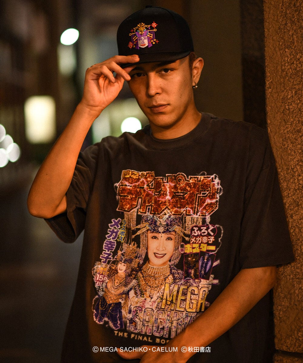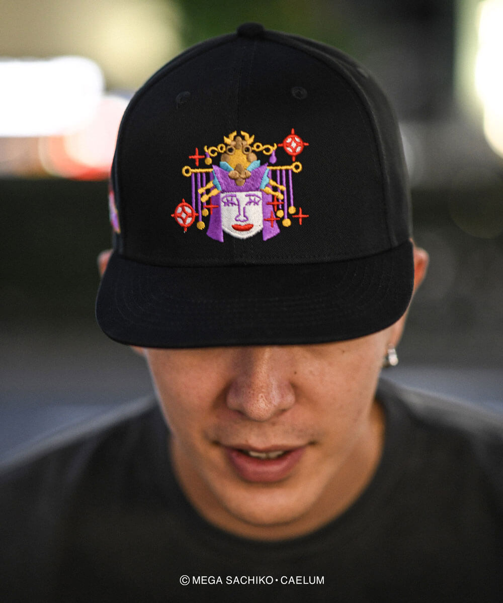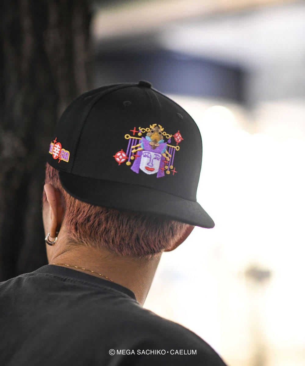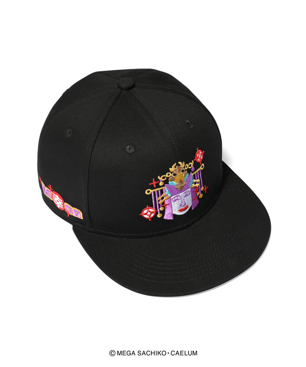 「MEGA SACHIKO」をフィーチャーしたスナップバックキャップ