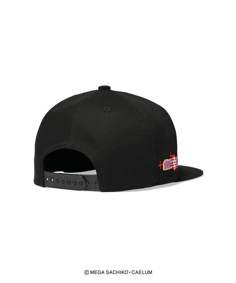 「MEGA SACHIKO」のグラフィックを刺繍したインパクト大のスナップバックキャップ。
