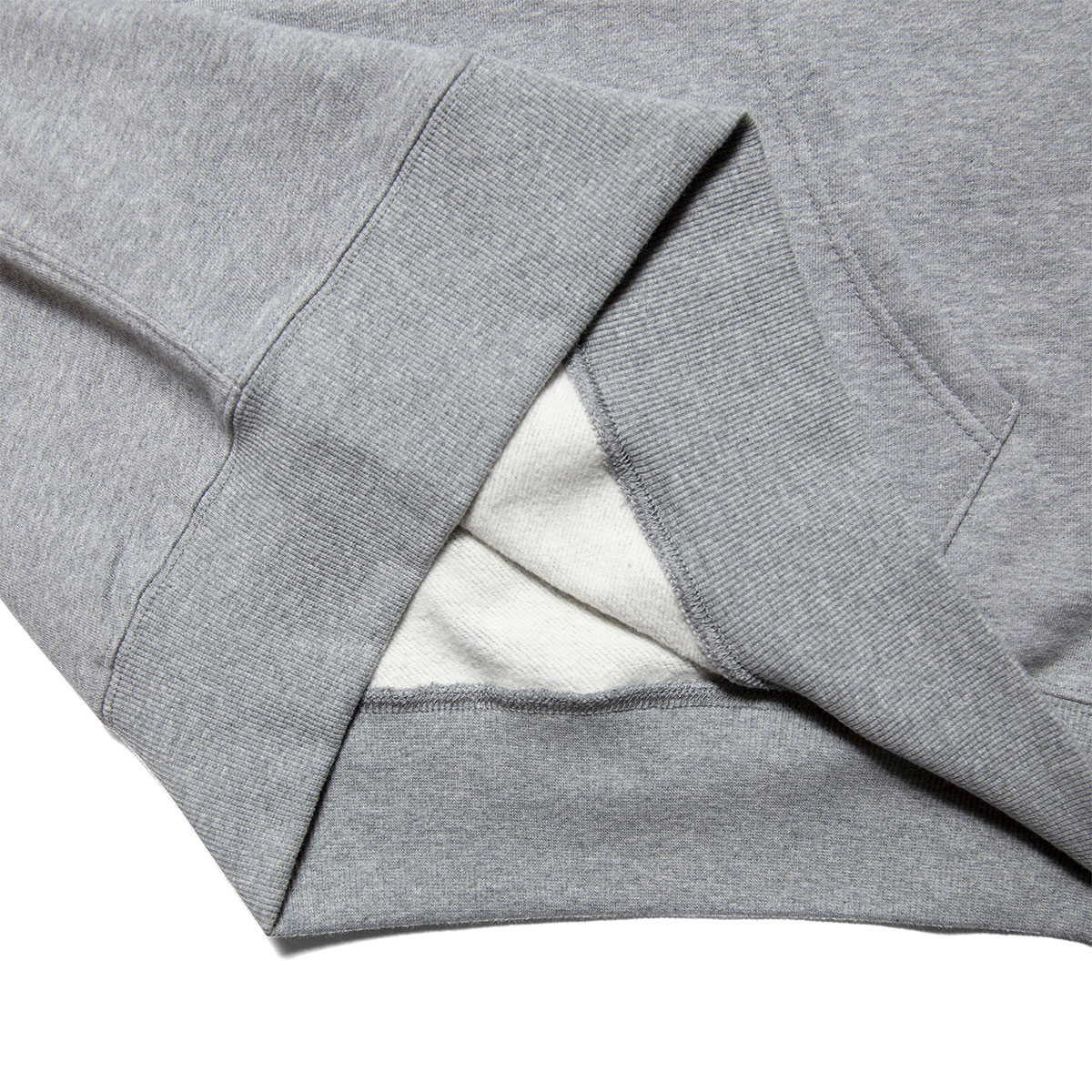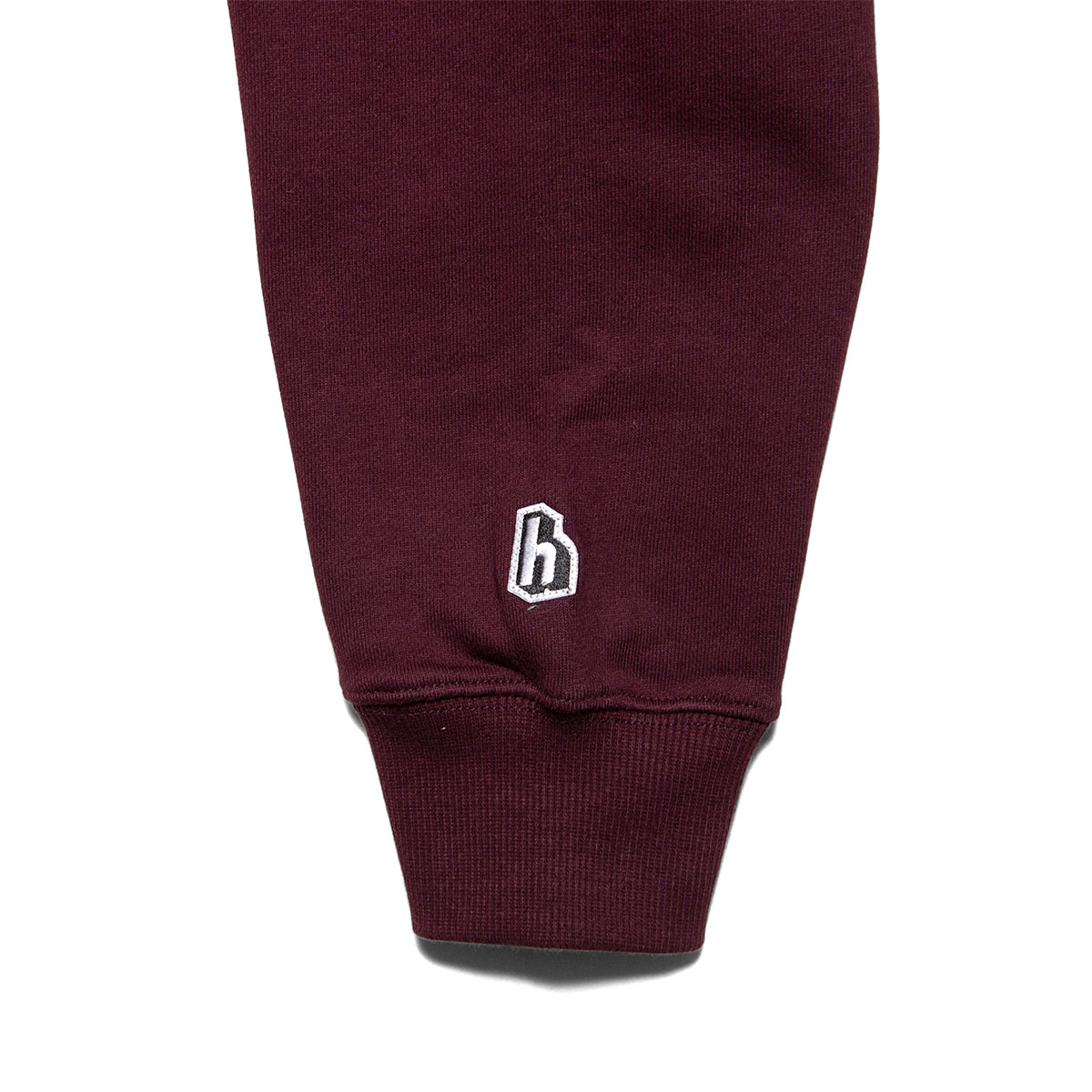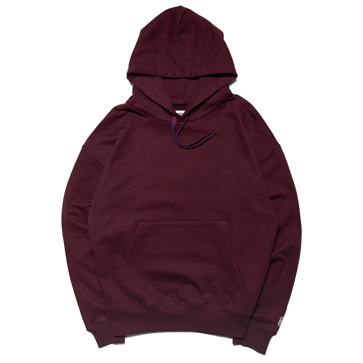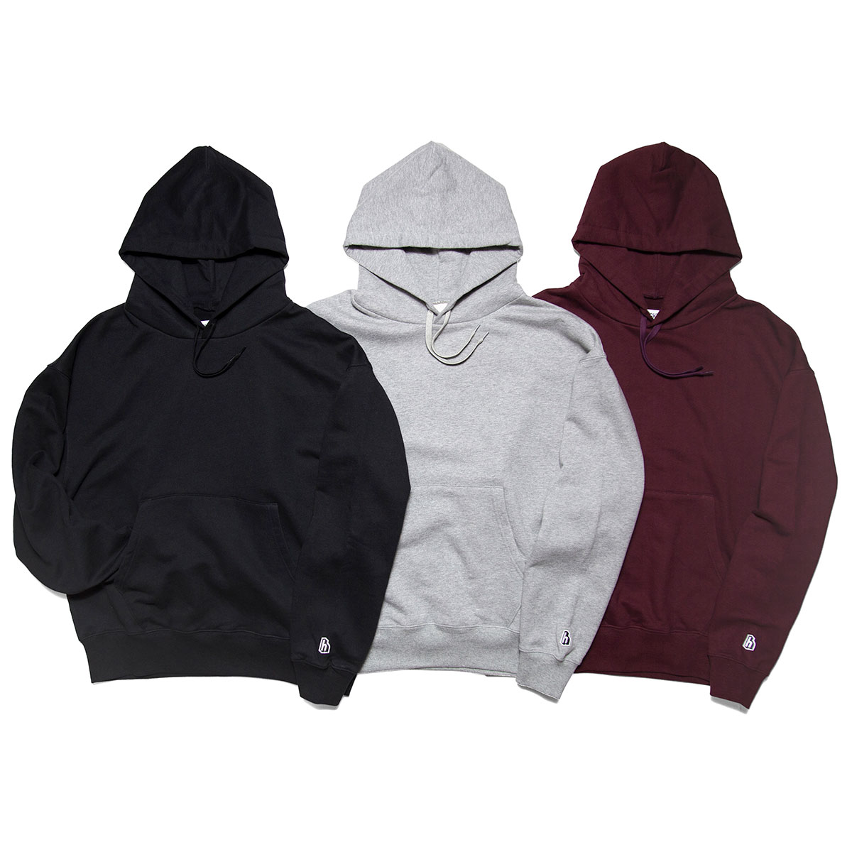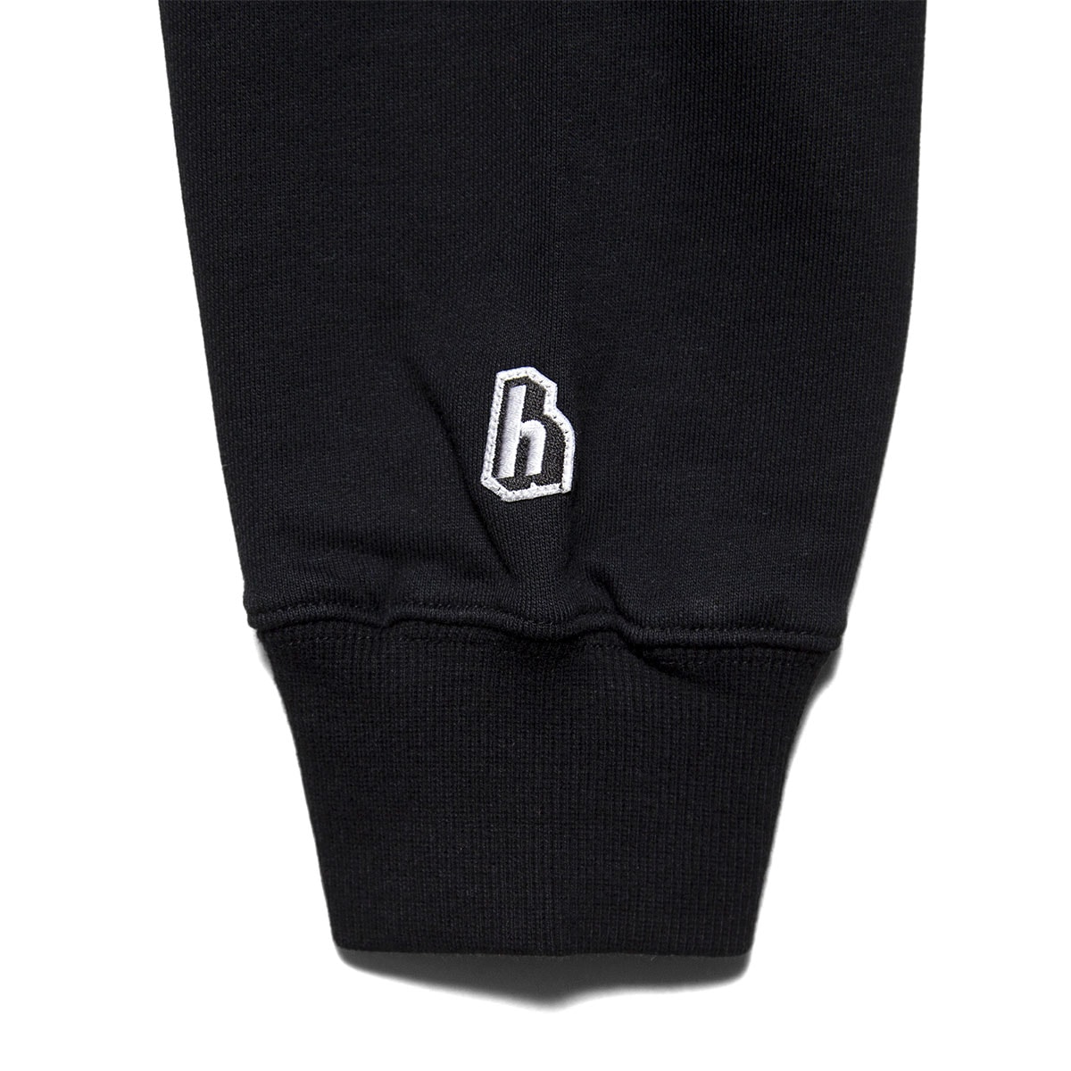 左袖の"h"ロゴワッペンのみのシンプルなスウェットフーディー。