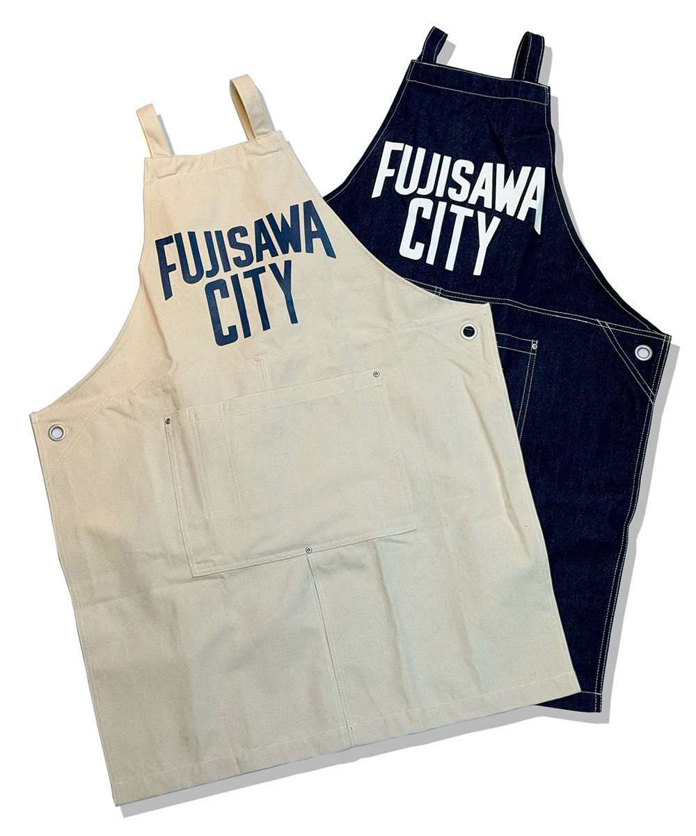 ニューヨークのスーベニア(お土産)として親しまれているデザインにオマージュを込めたFUJISAWA CITY LOVEシリーズのアイコンを使ったエプロン。