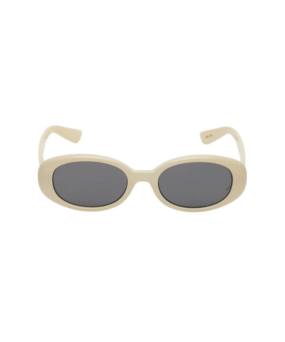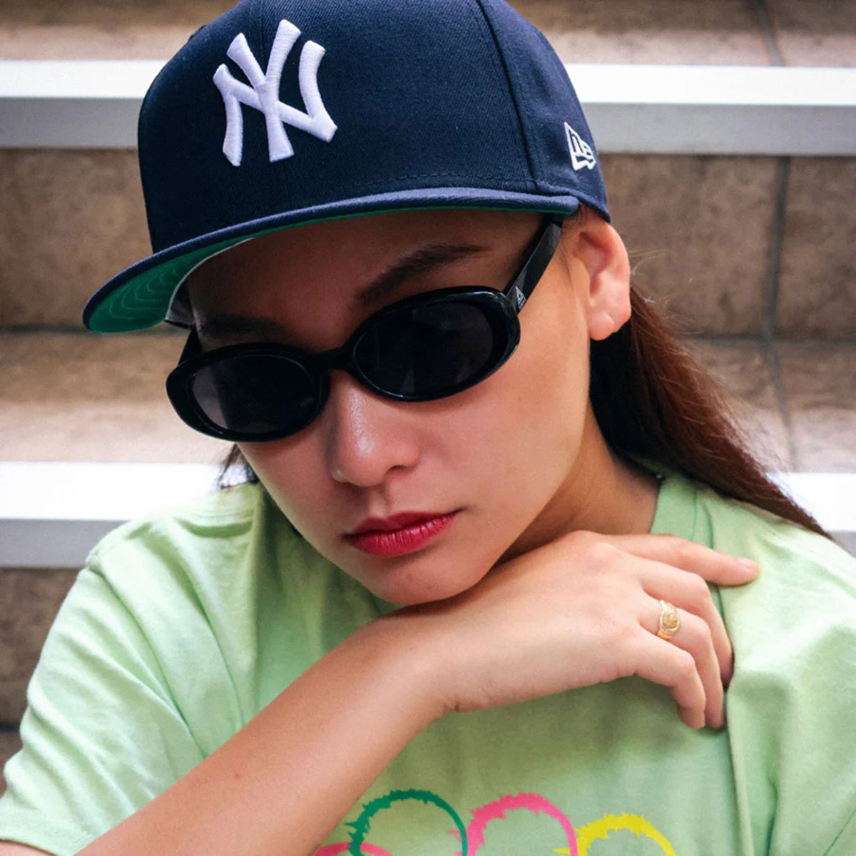 オーバル型の楕円形のフレームにスモークレンズを組み合わせ、ストリート系コーデやモード系スタイルにも抜群の相性。