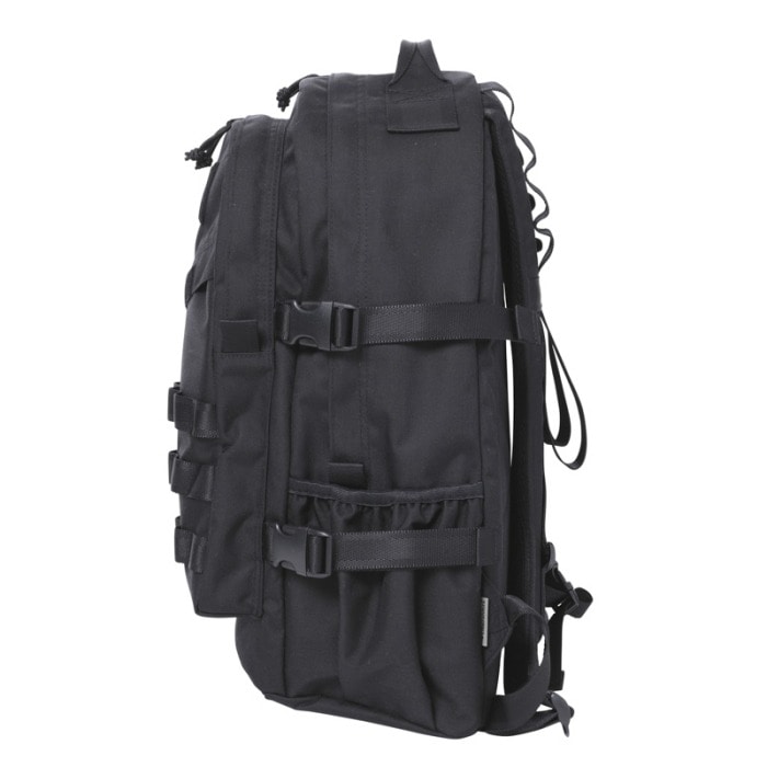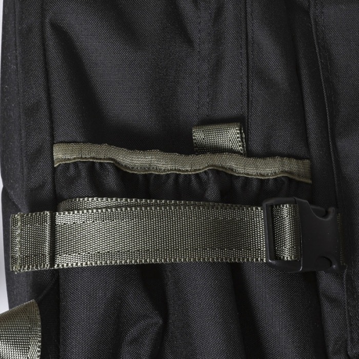 バッグ両サイドにはボトルホルダーとコンプレッションストラップを配置。