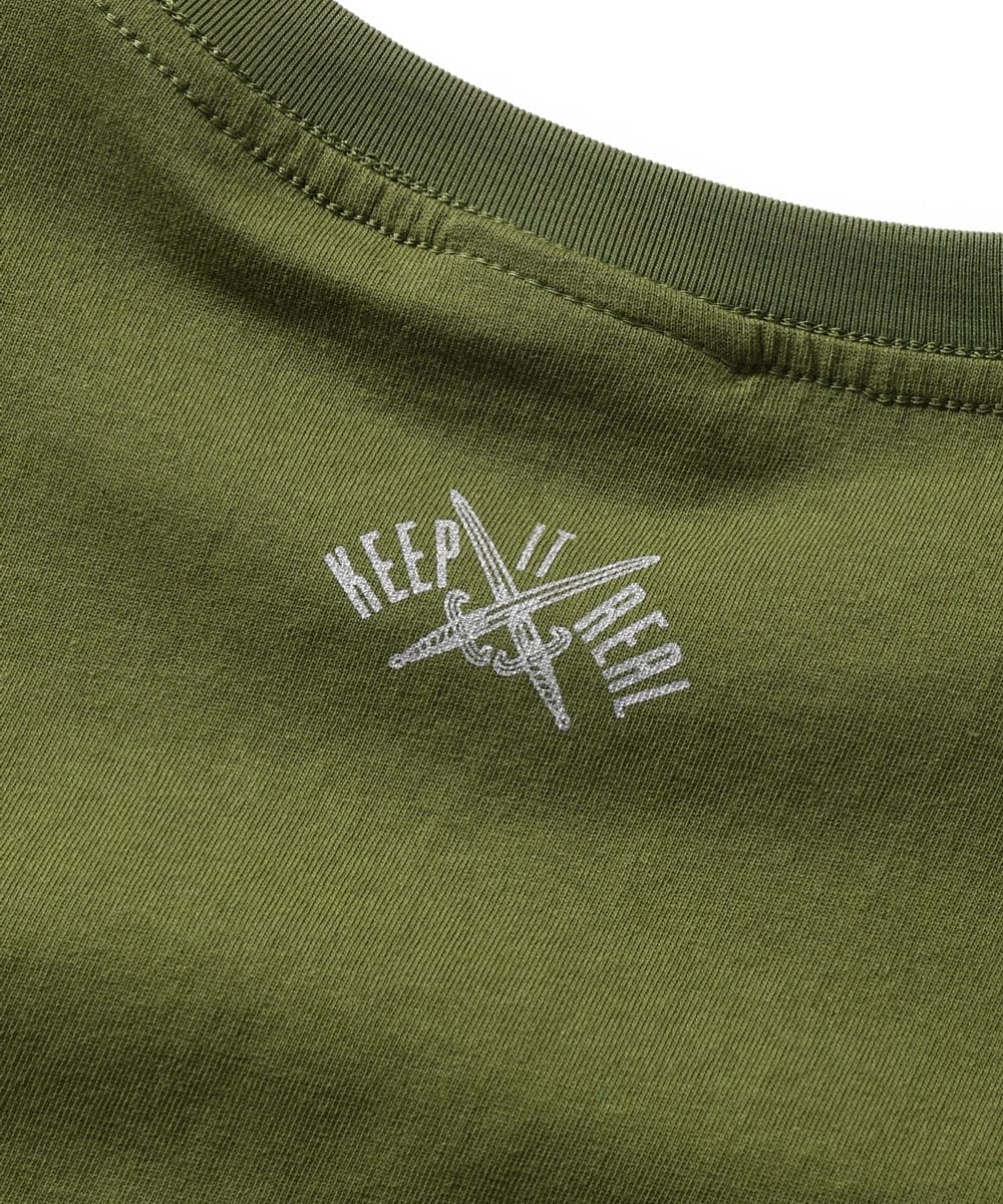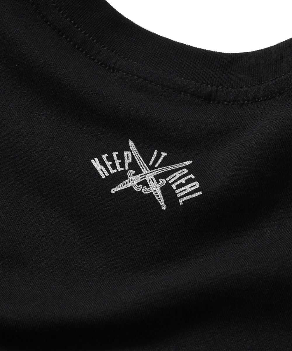バックの首元には「KEEP IT REAL」ロゴがリフレクターインクでプリント。