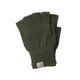 指先のないケーブル編みのアイテムで、リブ編みの袖口に Carhartt の織りの正方形ラベルが付いています。