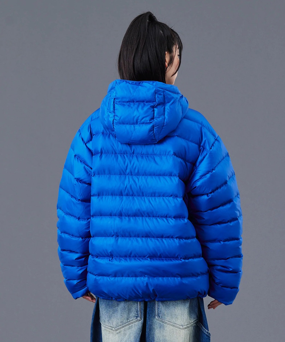 20デニールの極細糸のリップストップ生地を使用したダウンフーディ。