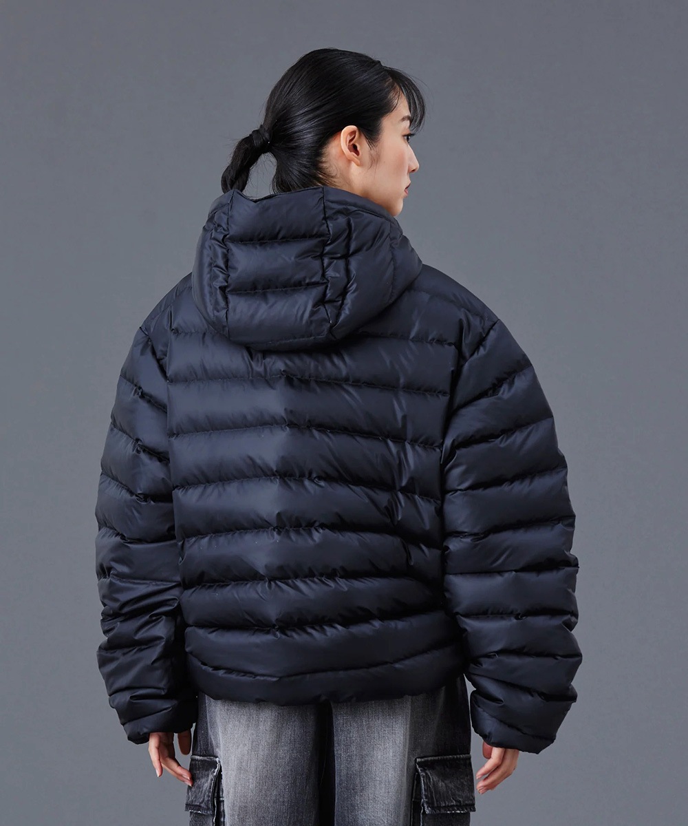 都市生活の中でのアウターという点を考慮し、防寒性と動きやすさを考慮した絶妙なダウン分量に調整 リップ部分に静電気の発生を抑制する静電糸を打ち込んでいる生地のためポリエステルの弱点である静電気の発生を軽減しています。