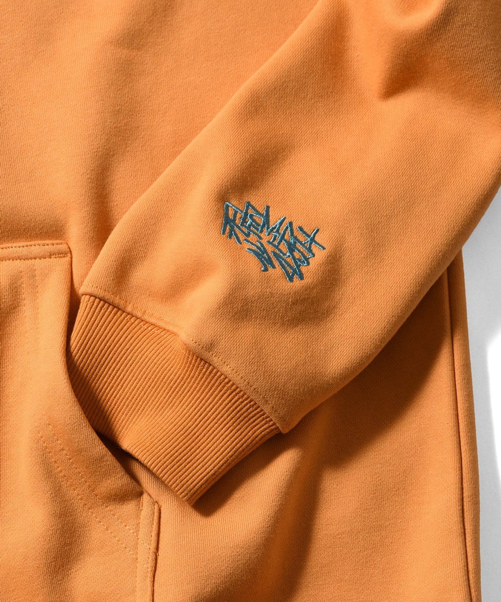 左袖にもREMIOのシグネチャーが刺繍で落とし込まれたプルオーバーフーディ。