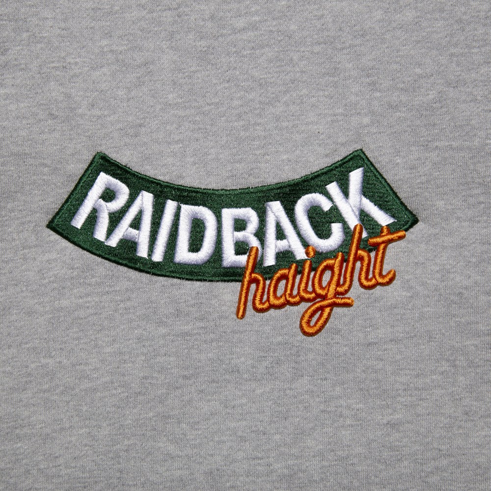 raidback fabricを象徴する逆アーチのロゴに、haightのロゴを組み合わせたコラボレーショングラフィック を、緻密な刺繍で再現。