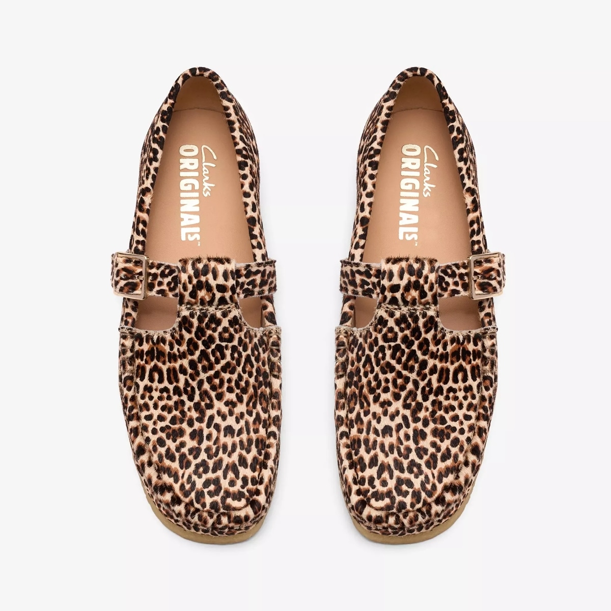 Wallabee T Bar は、クラシックなヒョウ柄の模様が施された高級ヘアオンアッパーが特徴で、伝統的な職人技と印象的なデザインが融合しています。