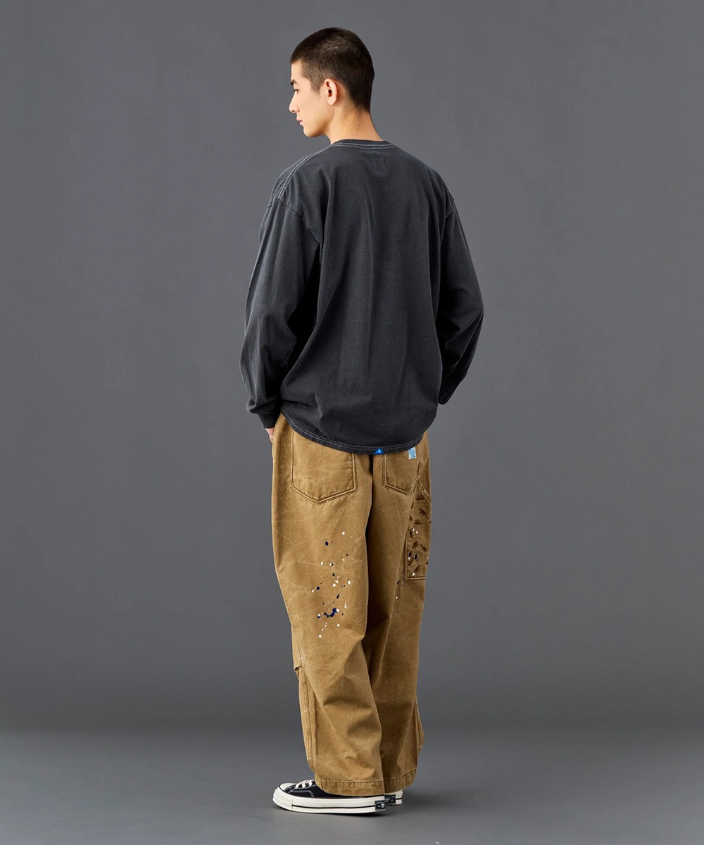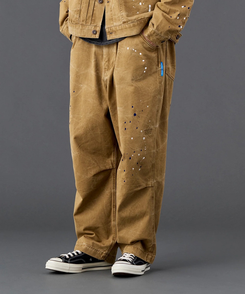 職人の手で独特の加工感に仕上げたサルエルチノペインターパンツ。