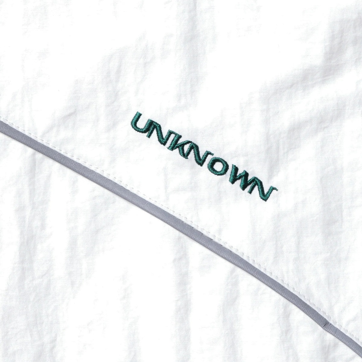 左胸にLIBERAIDERSの刺繍、両袖にDESTINATION UNKNOWN刺繍が入ります。背衿下に折り鶴ロゴ刺繍が入ります。