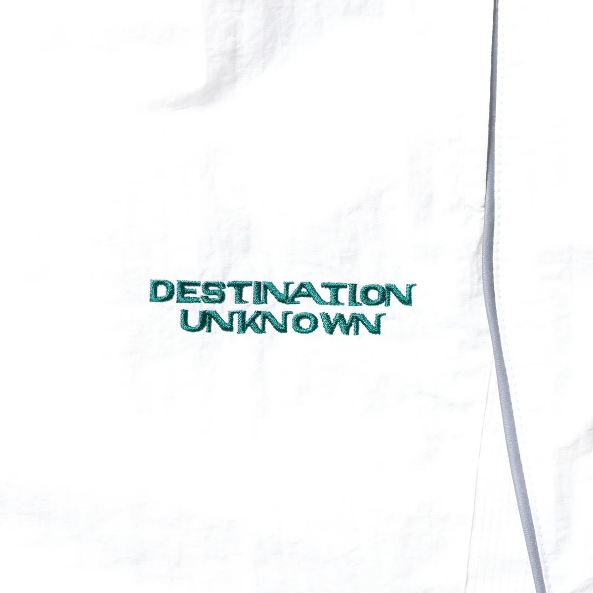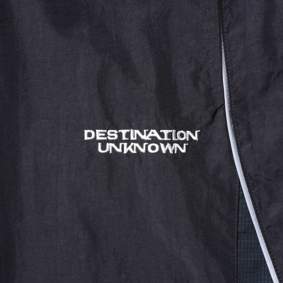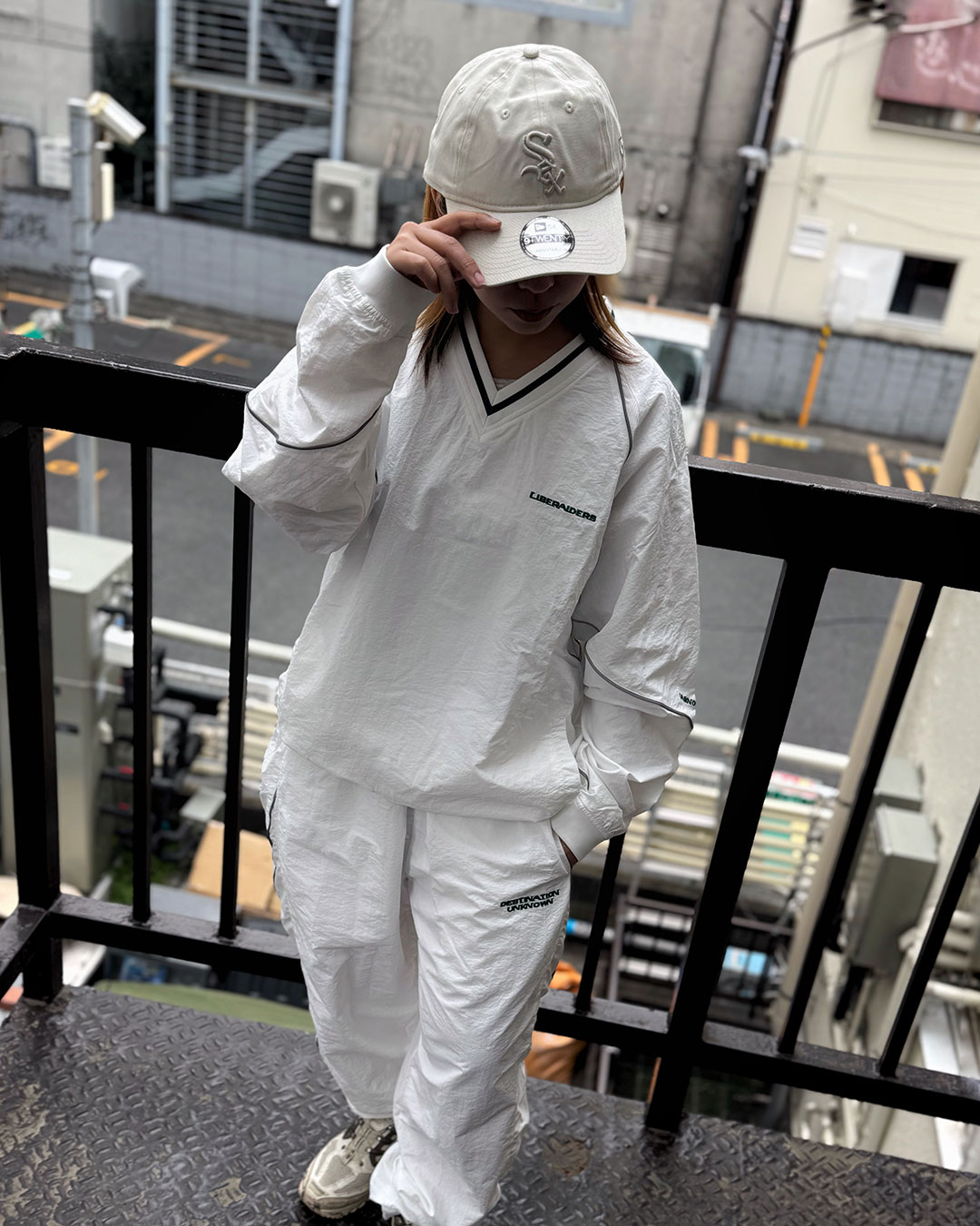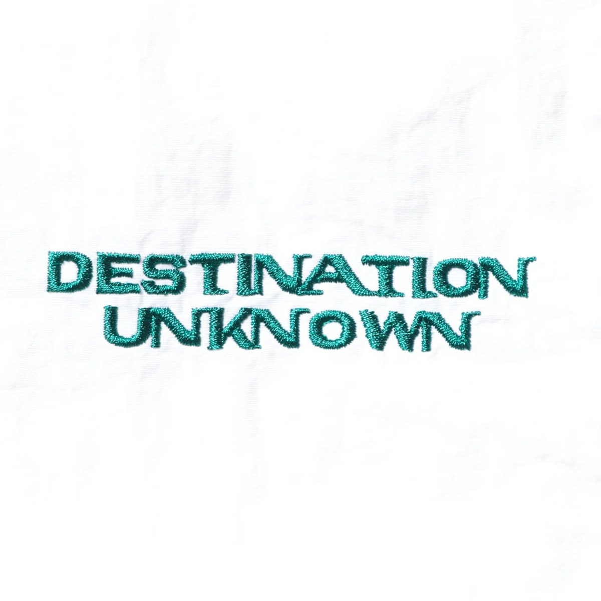 左前にDESTINATION UNKNOWN刺繍、右裾にLIBERAIDERS刺繍が入ります。