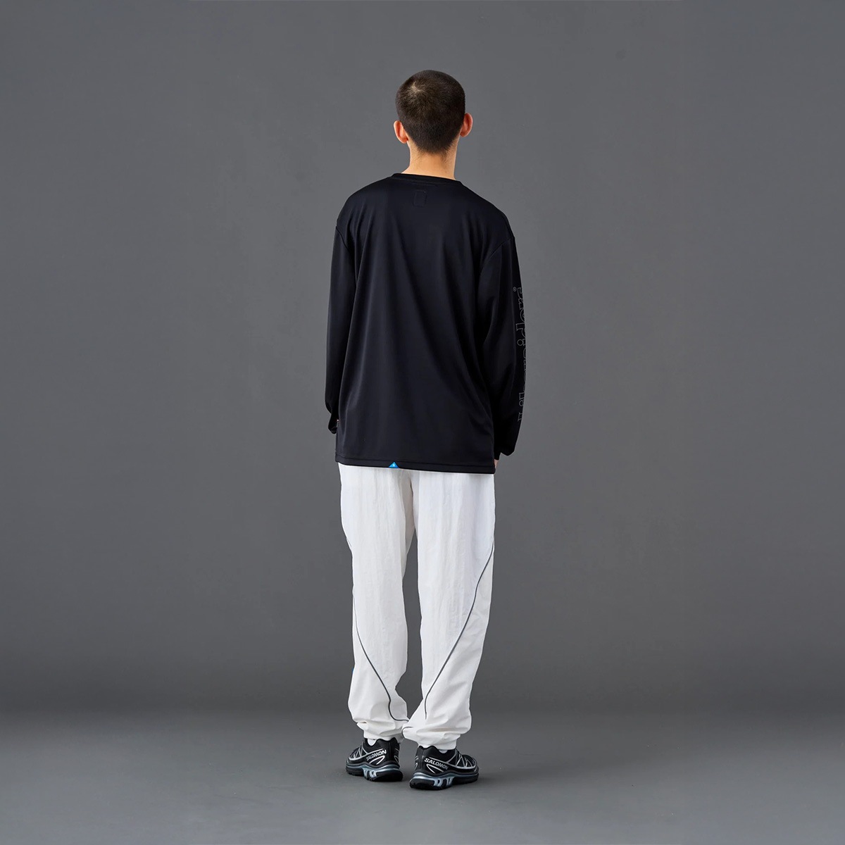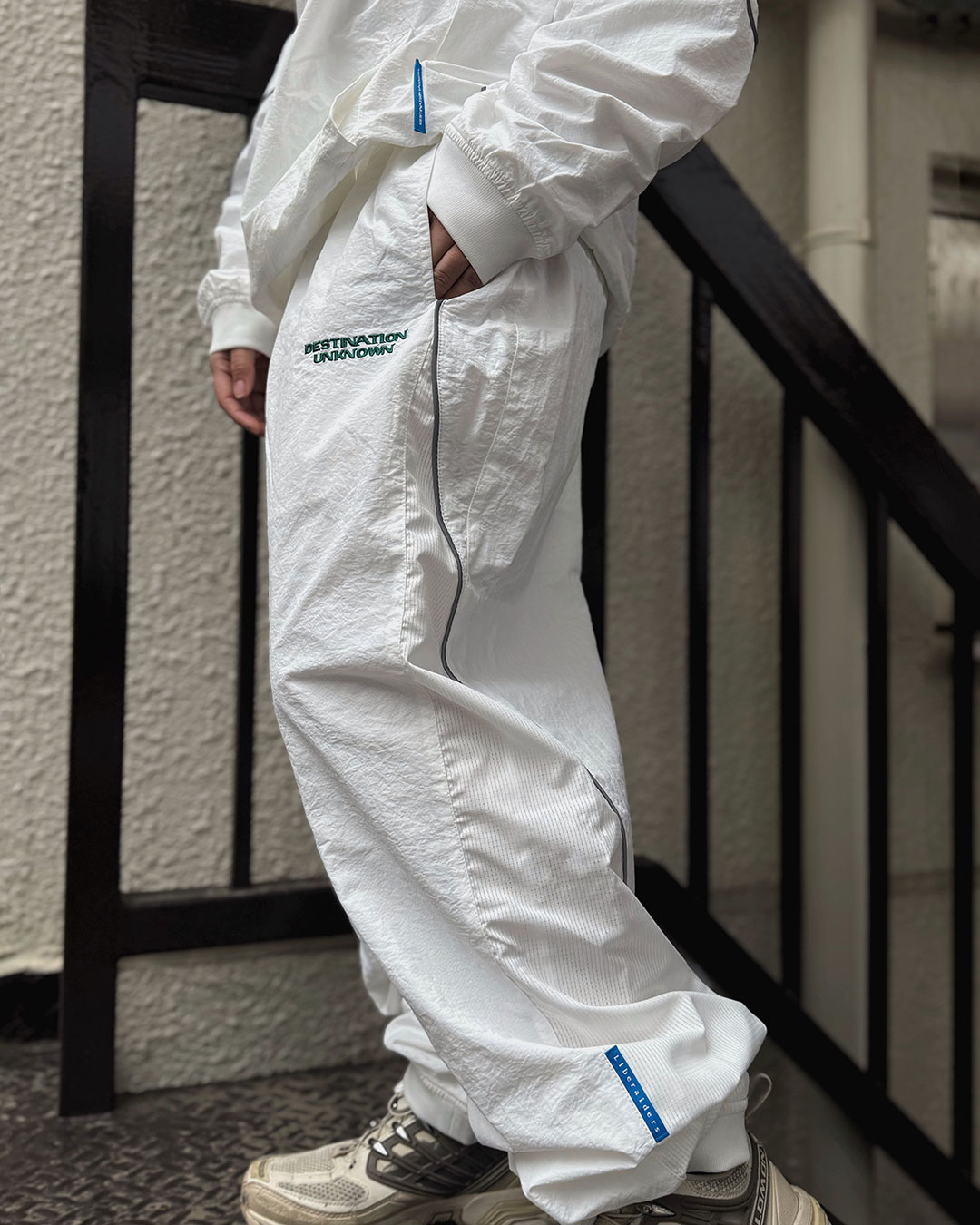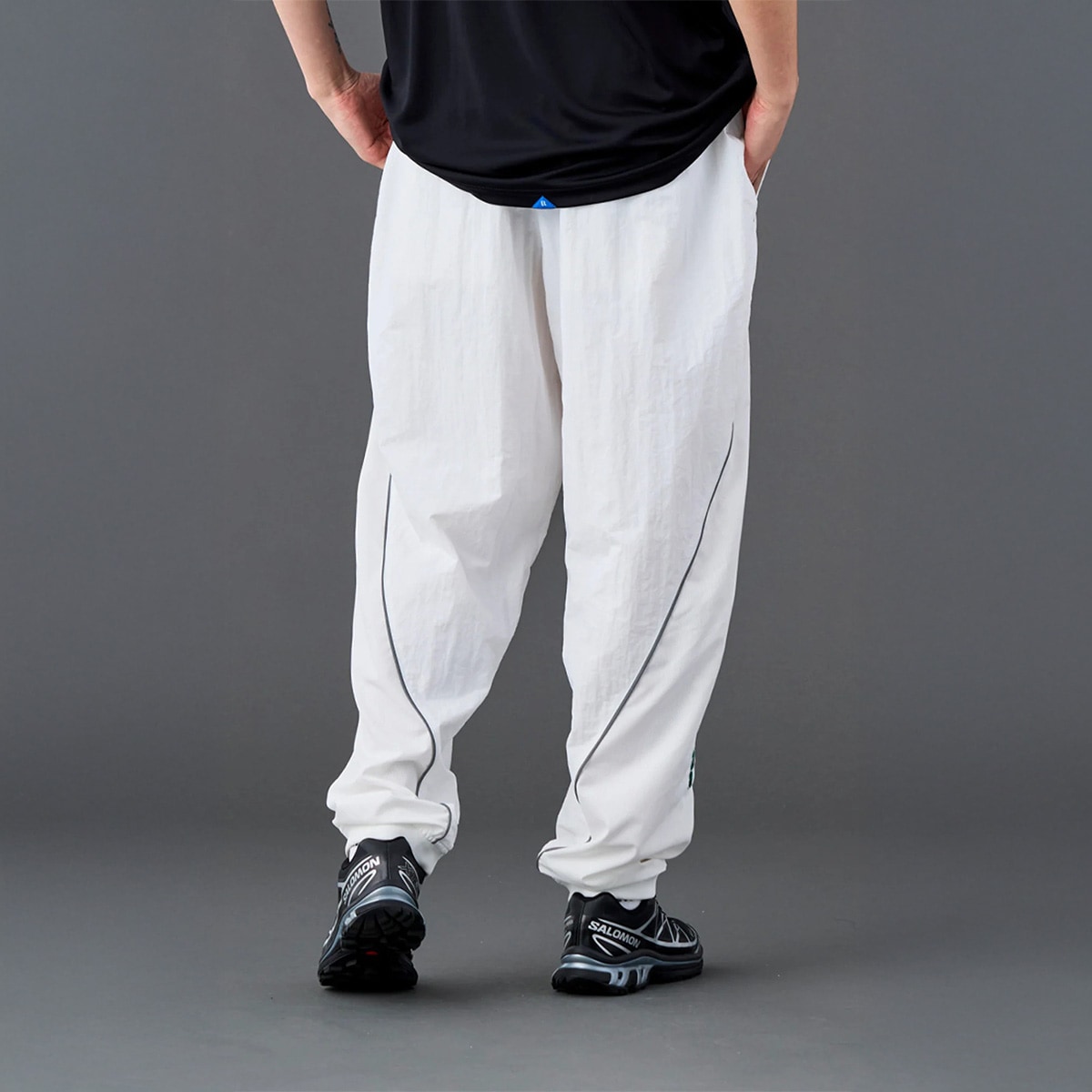 塩縮ナイロン生地を使用したナイロンイージーパンツ。