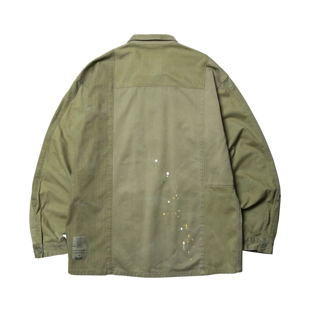マルチな生地をパッチワークにしたBDUシャツ。