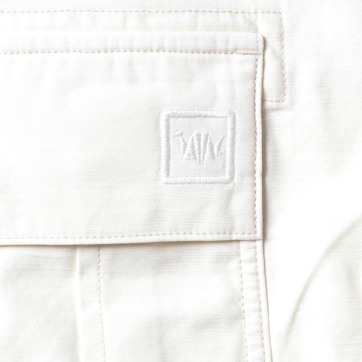 ポケットのフラップに折り鶴ロゴの刺繍が入ります。