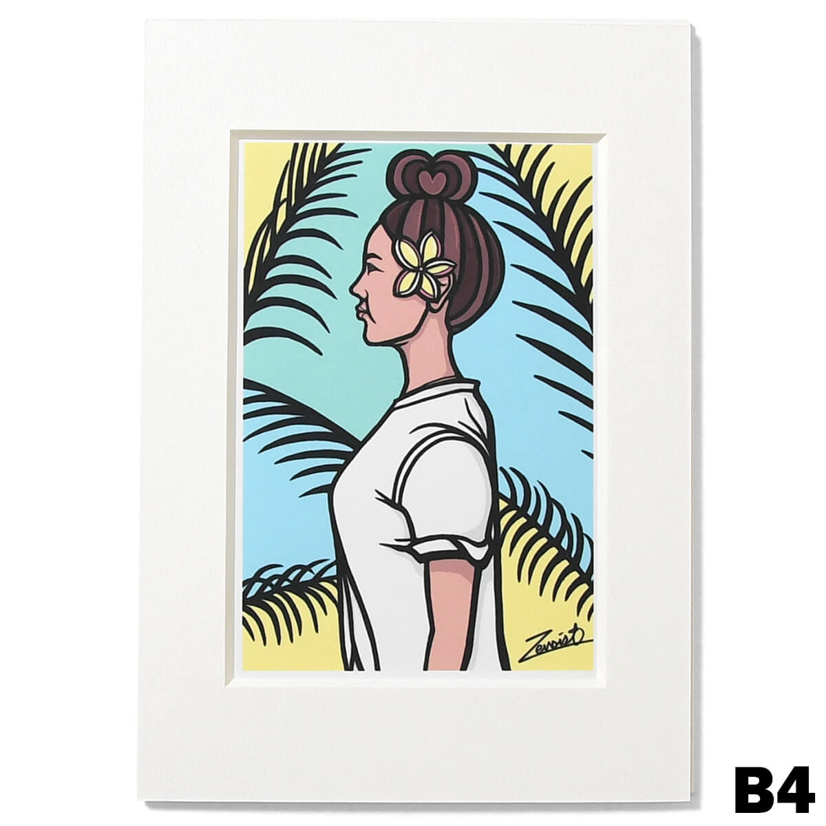 ハワイらしい温かみのある色調でロコガールを描いた一枚。 日常の飾らないスタイルの中に何気ない可愛らしさを表現。