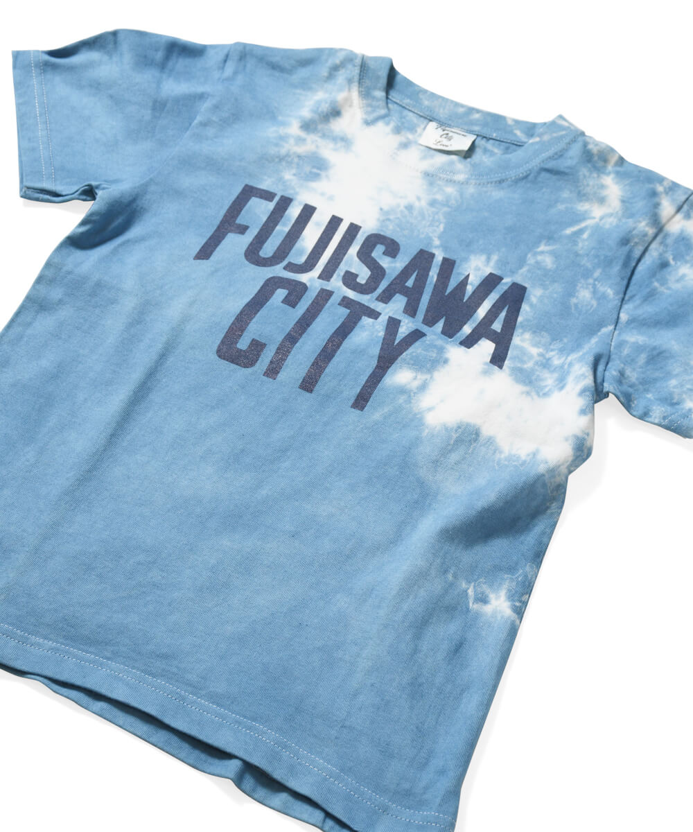 日本の伝統的本藍染めをあしらったフジサワシティロゴキッズTシャツ