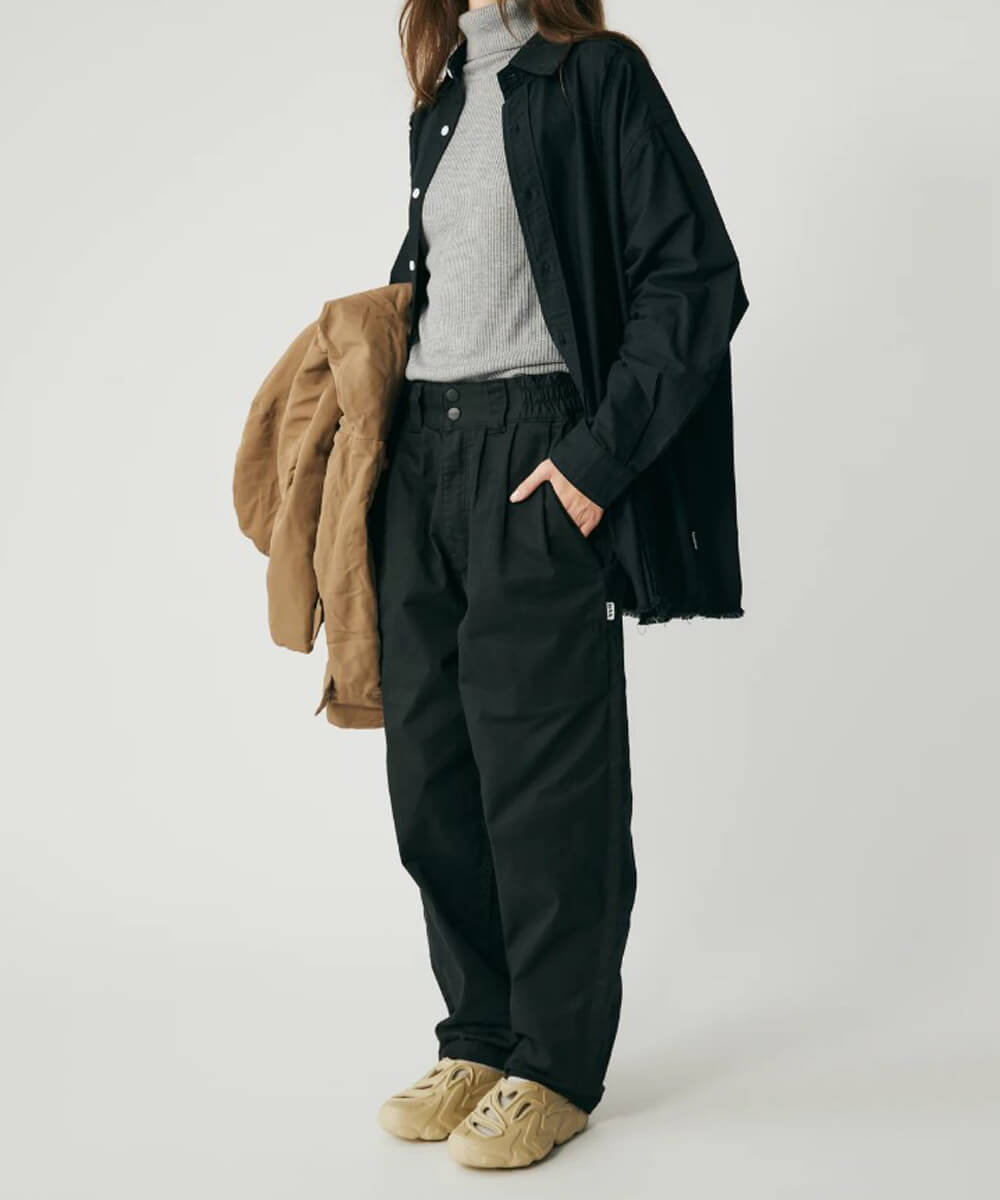 様々なスタイルにマッチするベーシックなバギーパンツ