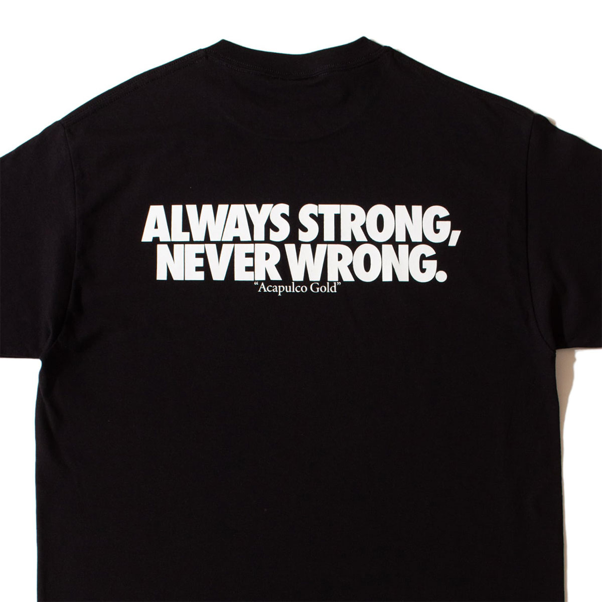 バックにはお決まりの"Always strong, never wrong"のメッセージがプリント。