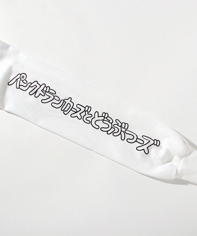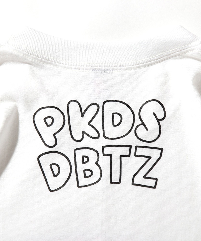フロントデザインは、てくてく歩いているあいつ達がインクジェットプリント、左袖の「パンクドランカーズとどうぶつーズ」のロゴもPKDSならではの雰囲気を醸し出す。