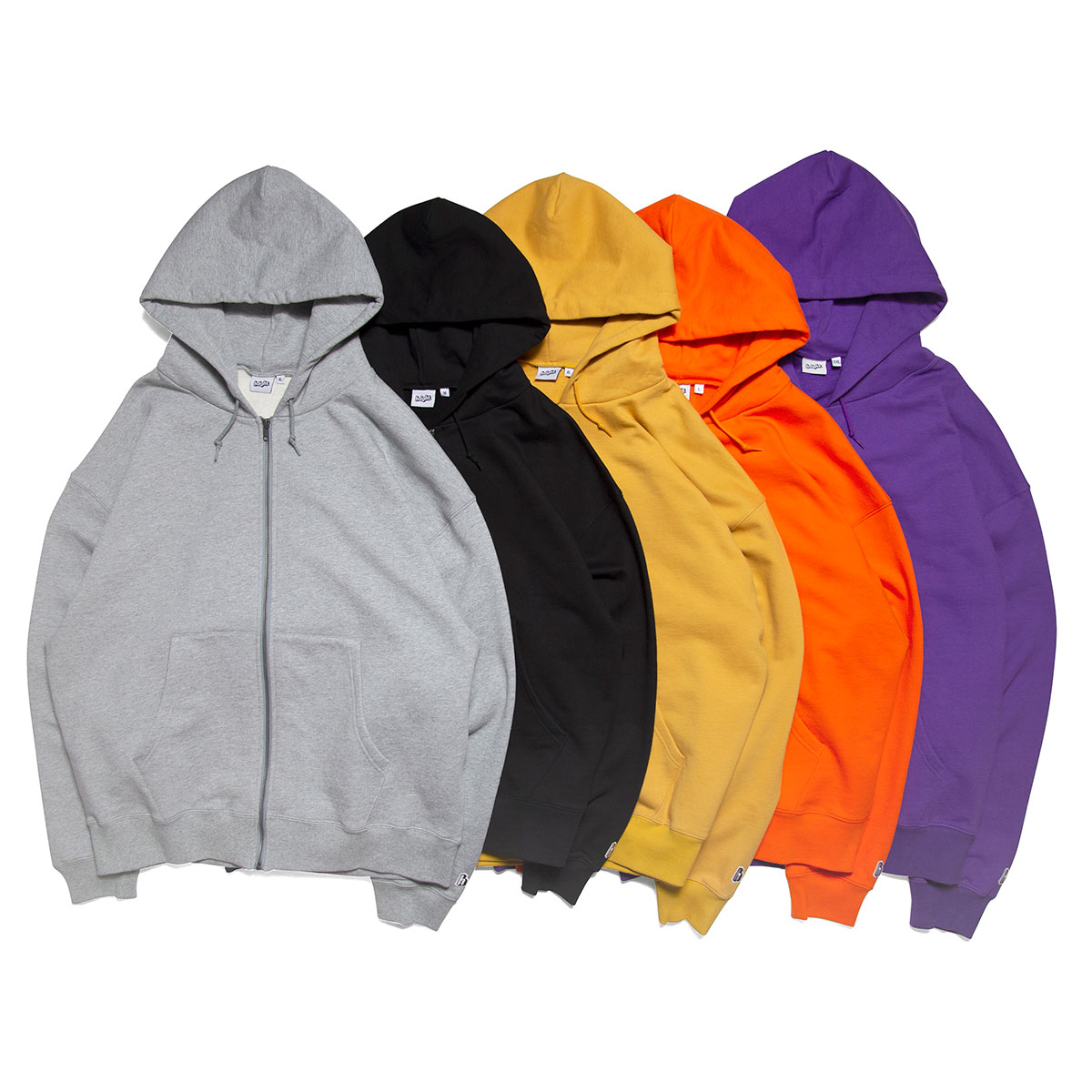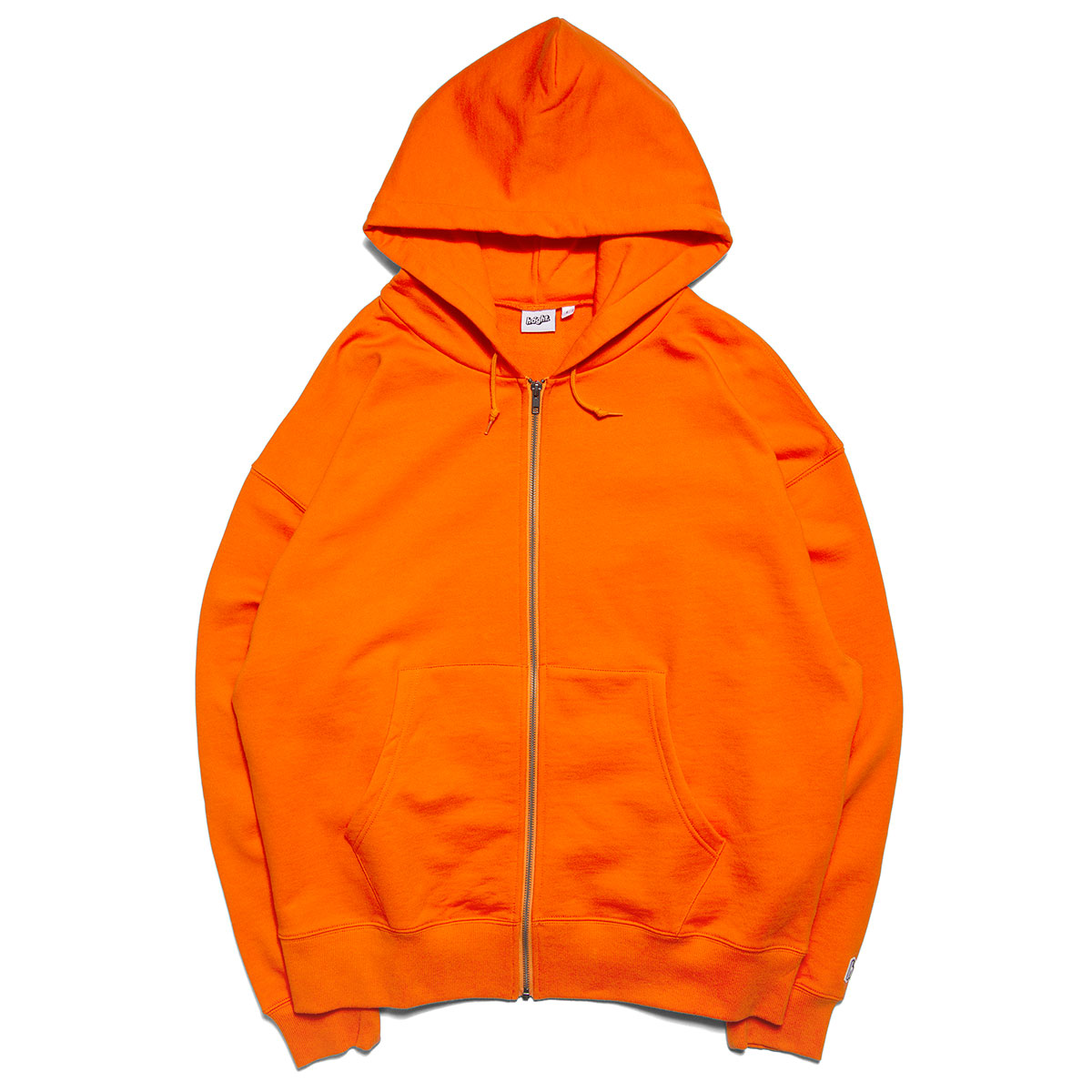 ブランドオリジナルのシルエットに左袖に"h"ロゴワッペンを落とし込んだプレーン仕様のシンプルなジップアップスウェットフーディー。