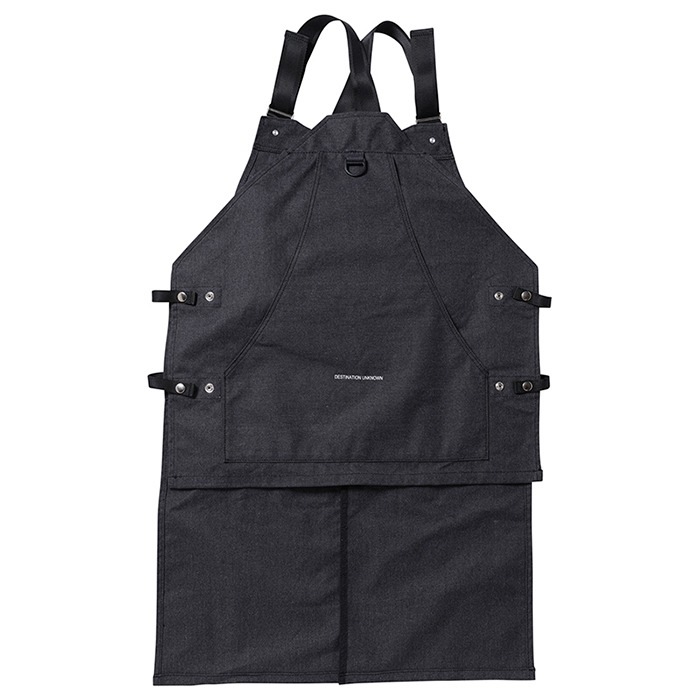 前回より、着丈も長くなり背中のハンティングポケットも大きくなり、収納力も上がっています。フロントスカートにはスリットが入っているので、ロング丈ながら動きやすく、胸部の立体ポケットにはドリンクや調味料を入れたり、Dカンにはライトがハンギングしたり出来るように設計されており、細かな部分迄ギミックが効いたエプロン。