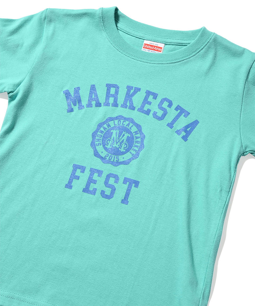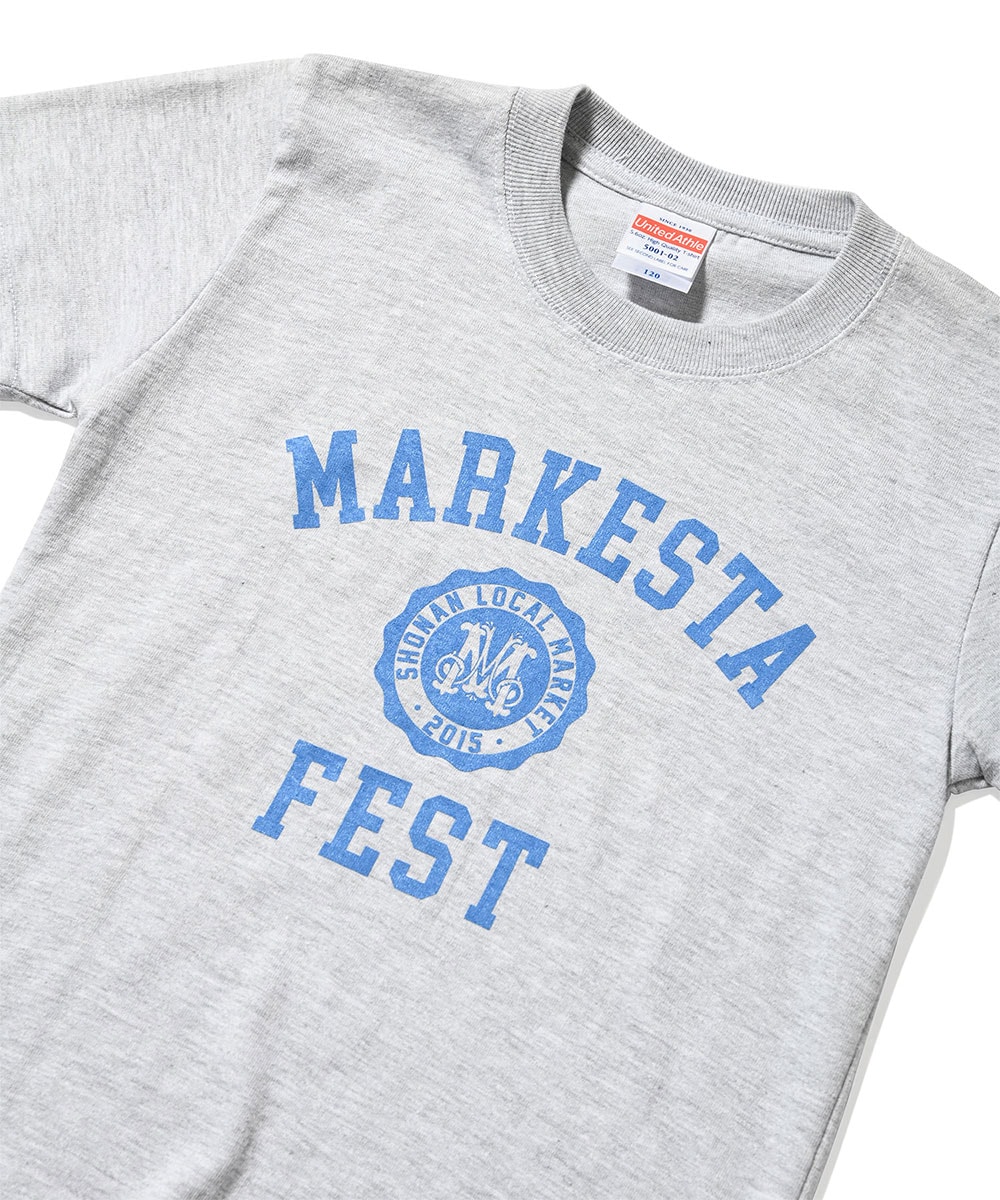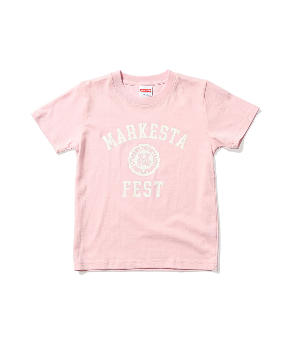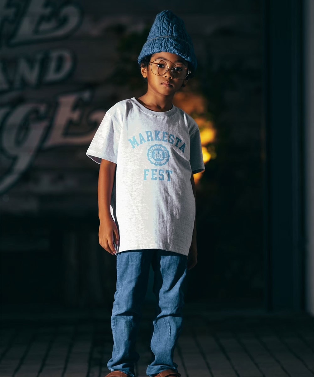 MARKESTAオリジナルのカレッジロゴをフロントにプリントした、キッズサイズのフェスTシャツ。