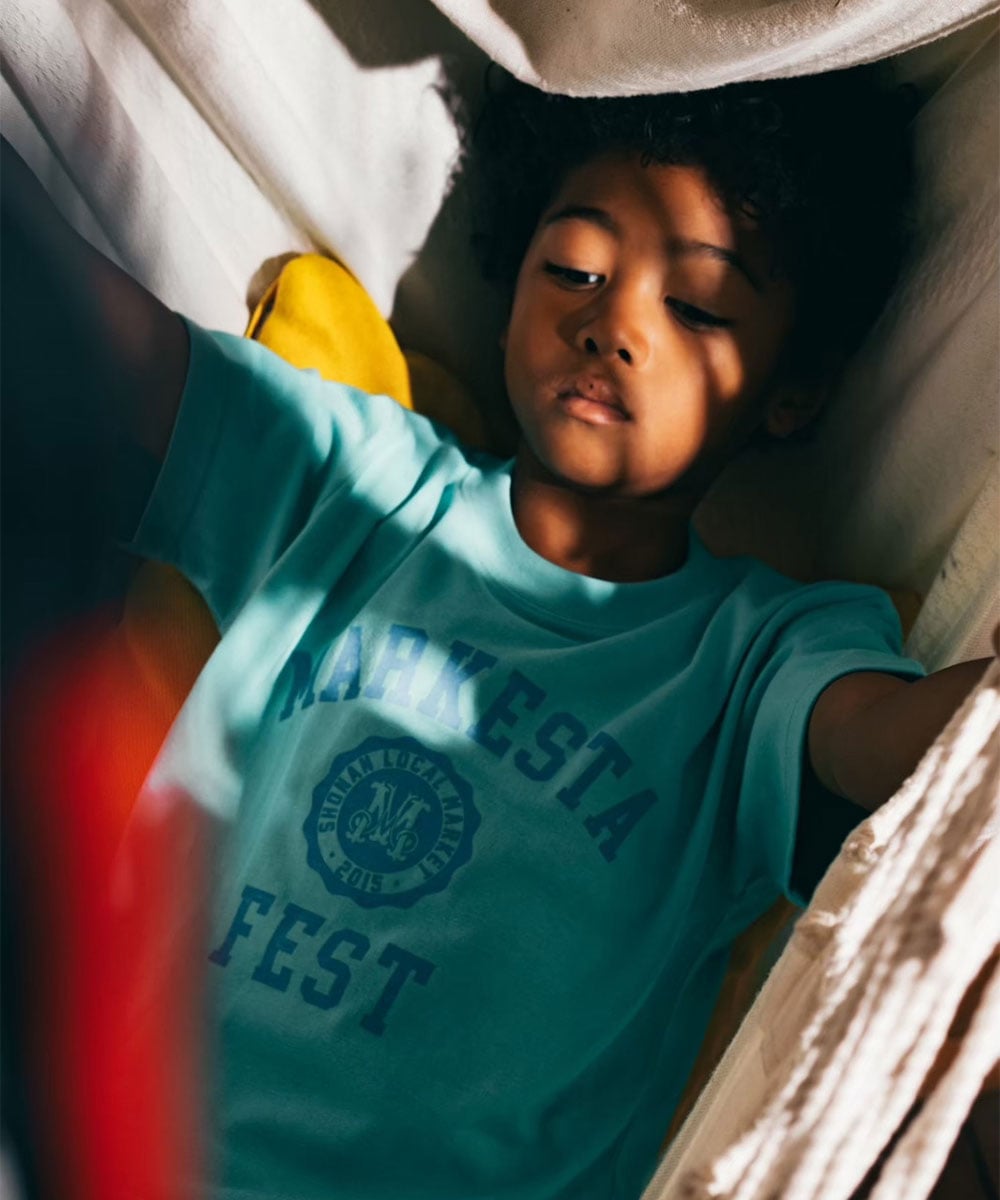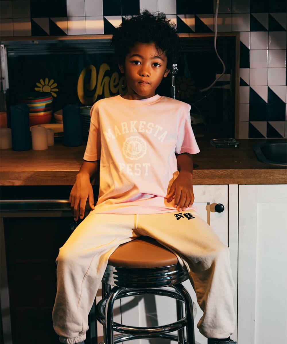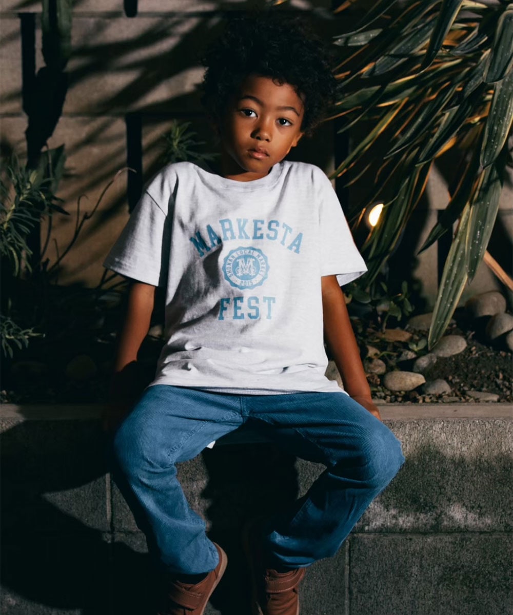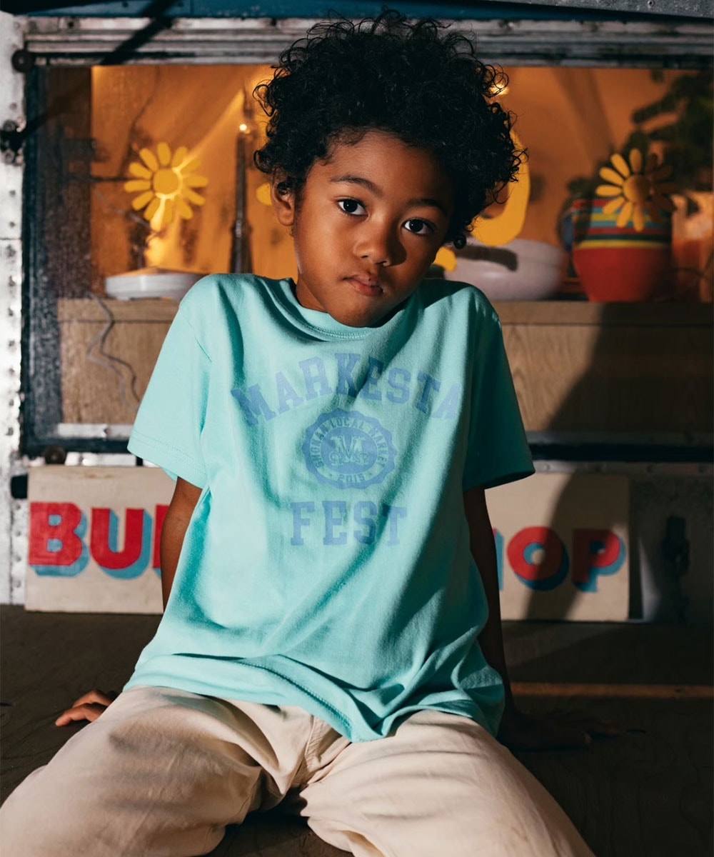 MARKESTAオリジナルのカレッジロゴをフロントにプリントした、キッズサイズのフェスTシャツ。