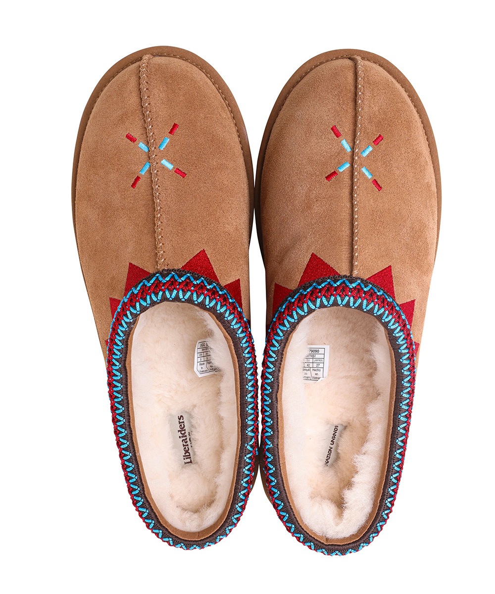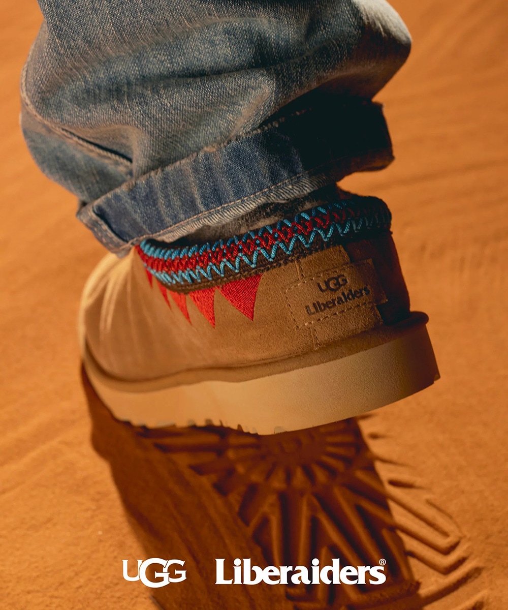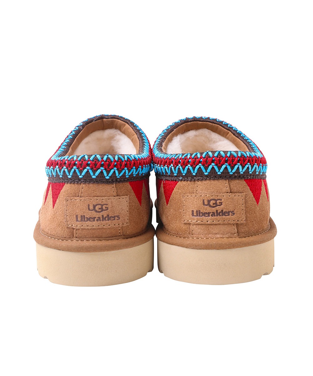 外でも履けるスリッパとして長年親しまれているUGG?の代表的なモデルTasman(タスマン)をベースに世界中を旅しながらコレクションを発表しているLiberaidersが民族的考察に関して再構築した一足。