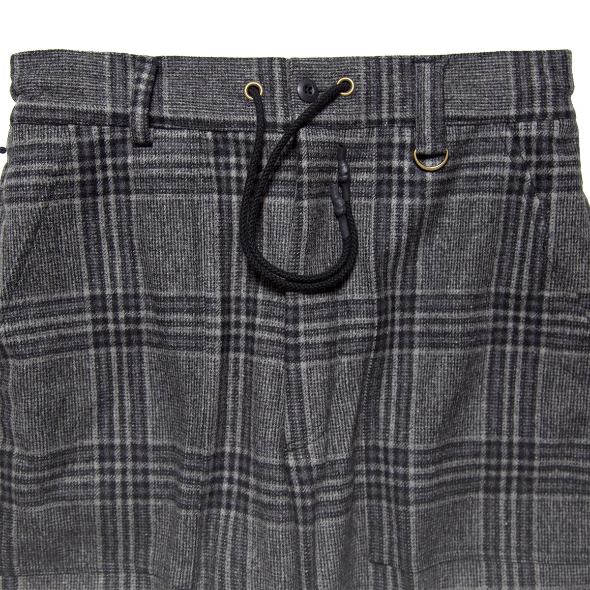 ウエスト部分にドローストリングとベルトループを装備。