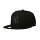 ブラックで統一されたニューヨーク・ヤンキースのスナップバックキャップ。